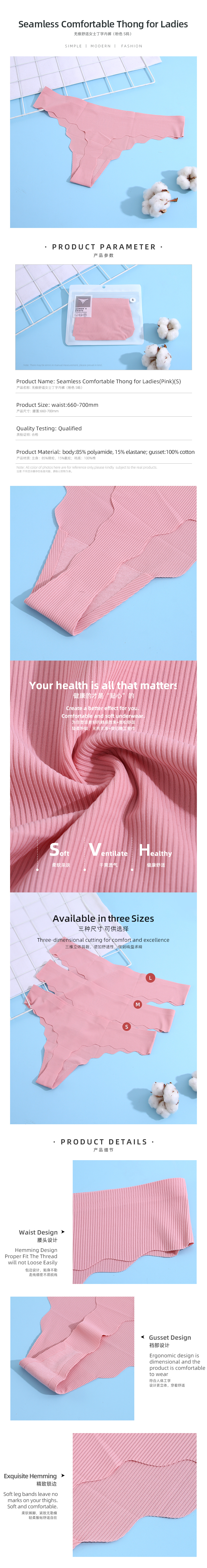 Seamless Comfortable Thong for Ladies(Pink)(S)