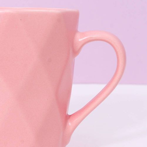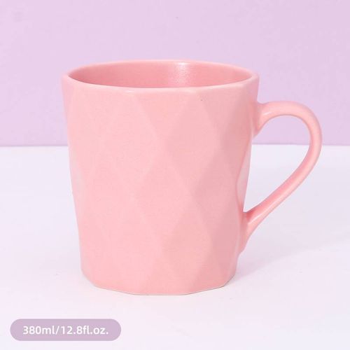 380ml/12.8fl.oz. Solid Color Diamond Pattern Basic Ceramic Cup (Pink)