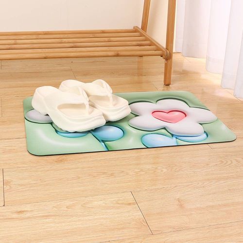 Expansion Element White Flower Square Fluffy Floor Mat (Green)